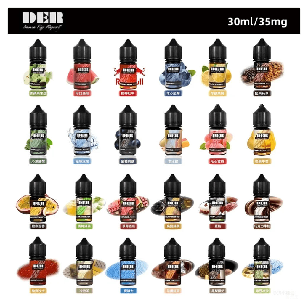 【小煙油】DER 系列 30ml #3.0% 現貨口味: 梅子綠茶 水蜜桃 橙子檸檬 芒果 藍莓 西瓜 冷泡茶 寶礦力 沙士 薄荷 檸檬 冰泉 蜜桃冰茶 草莓奇異果 草莓西瓜 紅茶 烏龍綠茶 巧克力牛奶 老冰棍 蔓越莓鳳梨百香果 綠豆紅